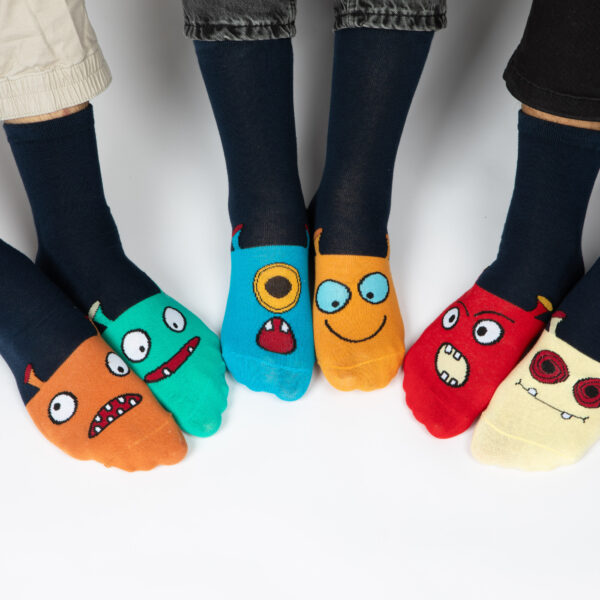 המחיר המקורי היה: ₪89.90.₪69.90המחיר הנוכחי הוא: ₪69.90.👾 קופסת מתנה 6 זוגות גרבי כותנה לבוגרים, דגם מפלצות
