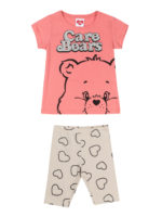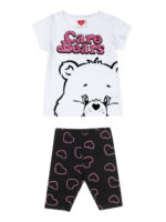 חליפת בנות שרוול קצר כותנה לייקרה, דגם דובוני אכפת לי.