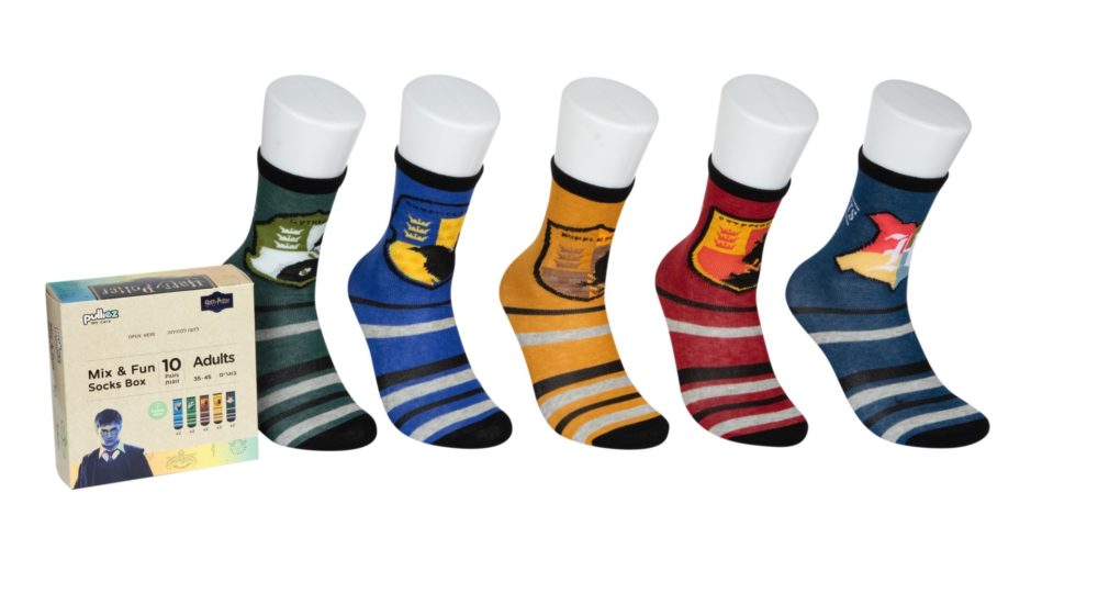 קופסה עם 10 זוגות גרבי כותנה לבוגרים, דגם הארי פוטר.