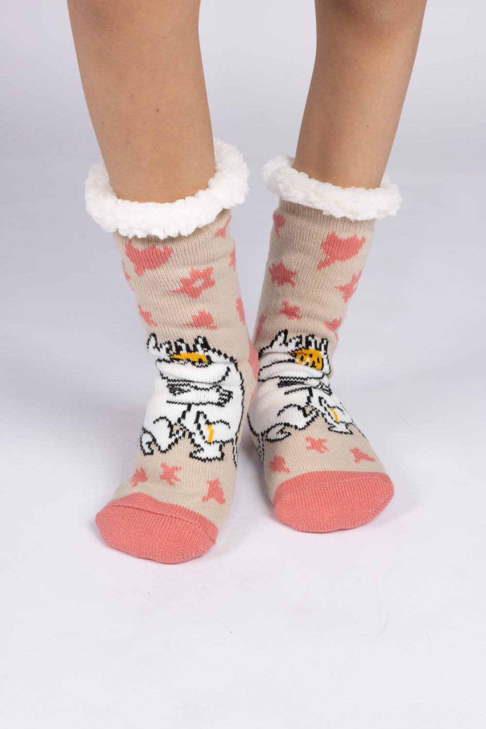 גרבי חורף פליז פרווה מפנקות לבית נגד החלקה, בוגרים דגם מומינים
