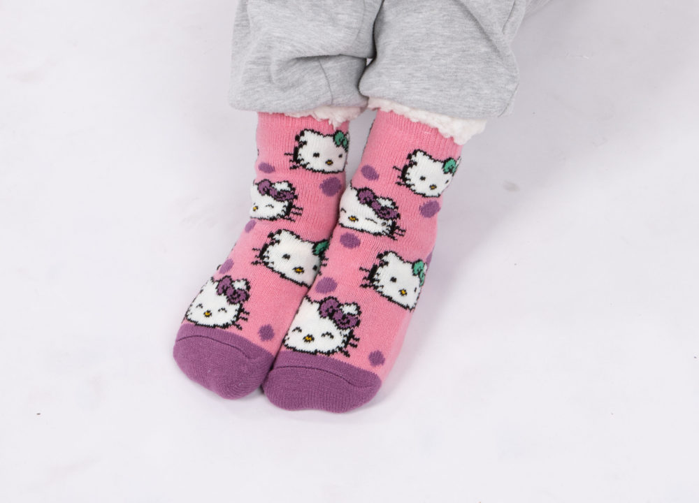 גרבי חורף פליז פרווה מפנקות לבית נגד החלקה, ילדים דגם הלו קיטי
