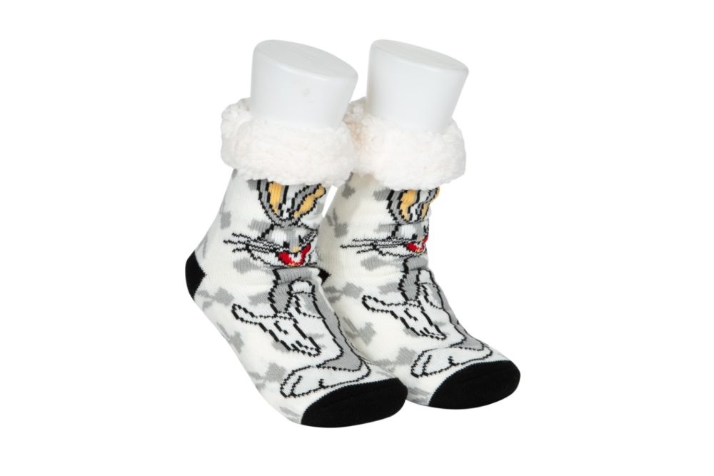 גרבי חורף פליז פרווה מפנקות לבית נגד החלקה, בוגרים דגם לוני טונס לבן