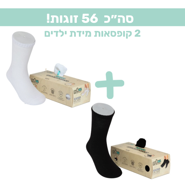 סה”כ 2 קופסאות = 56 זוגות גרביים