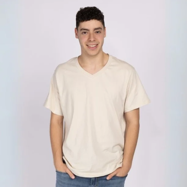 מארז 2 חולצות גברים 100% כותנה, מחשוף V, צבע קרם