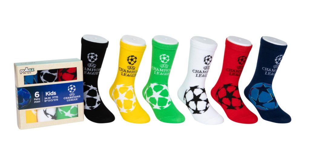 קופסת מתנה 6 זוגות גרבי כותנה ילדים, דגם צ’מפיונס ליג (ליגת האלופות)