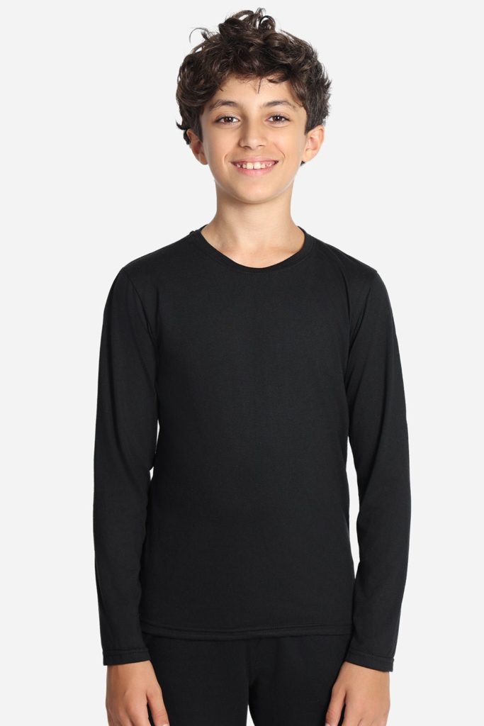 חולצה לנוער שרוול ארוך צווארון עגול – שחור (מידות 8-16)