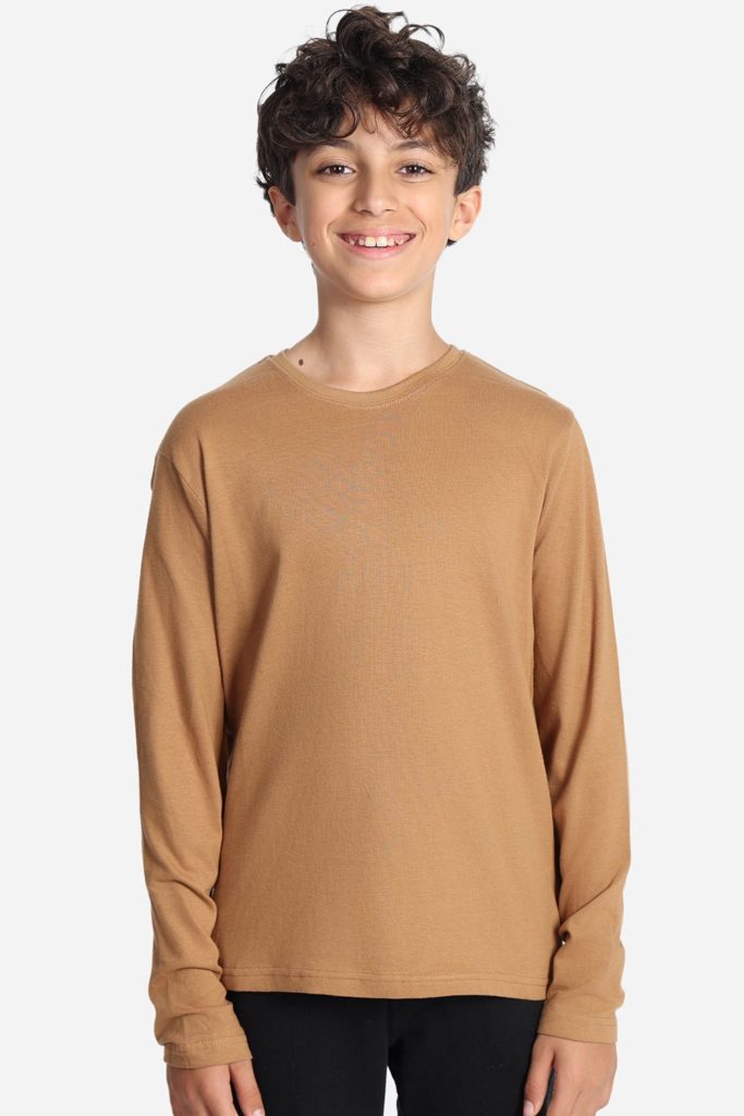 חולצה לנוער שרוול ארוך צווארון עגול – קאמל (מידות 8-16)