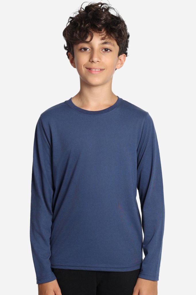 חולצה לנוער שרוול ארוך צווארון עגול – כחול ג’ינס (מידות 8-16)