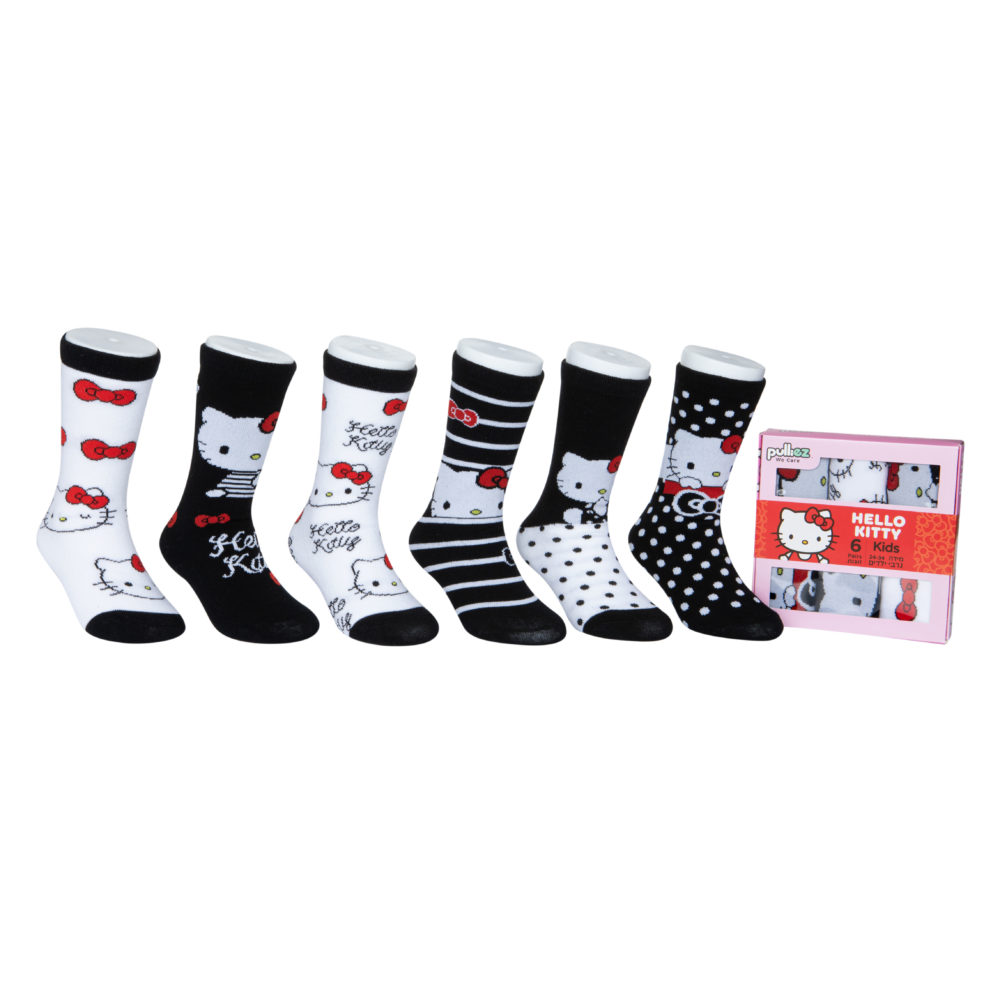 קופסת מתנה 6 זוגות גרבי כותנה ילדים, דגם הלו קיטי