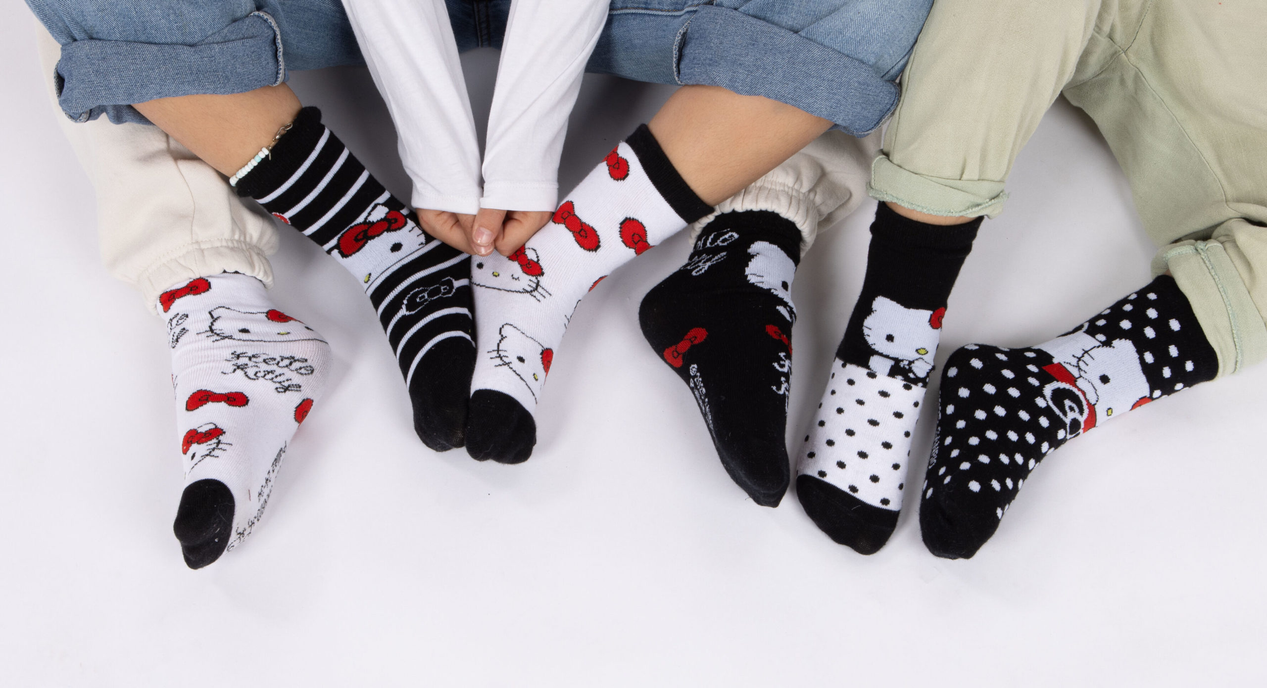 💖 קופסת מתנה – 6 זוגות גרבי כותנה מעוצבים דגם Hello Kitty 🎀🐱