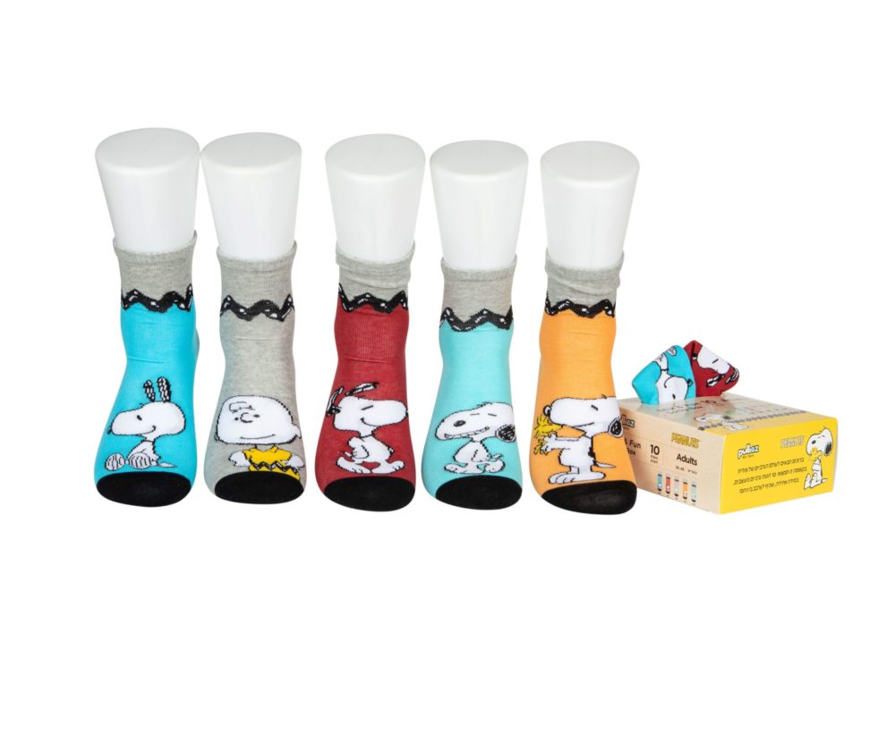 קופסה עם 10 זוגות גרבי כותנה מעוצבים לבוגרים, דגם סנופי.