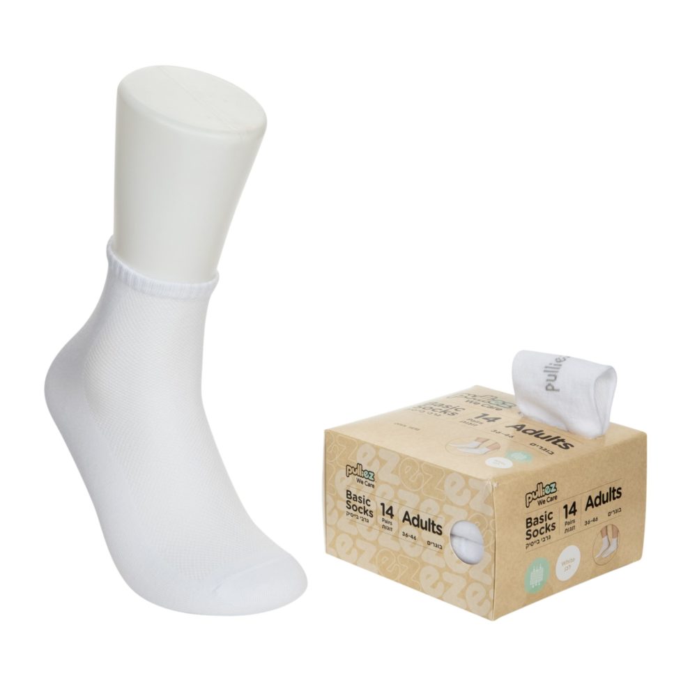 קופסה עם 14 זוגות גרבי בייסיק בוגרים בצבע לבן
