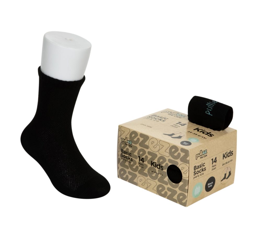 .קופסה עם 14 זוגות גרבי בייסיק לילדים בצבע שחור