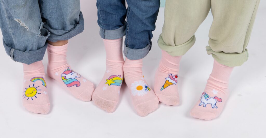 קופסה עם 28 זוגות גרבי בייסיק לילדים.